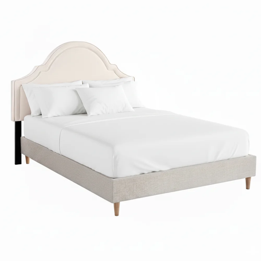 Artiss Queen Bed Frame with Scalloped Velvet Headboard, Faux Linen Upholstery, Storage, Wood Base, Beige, 300kg Capacity