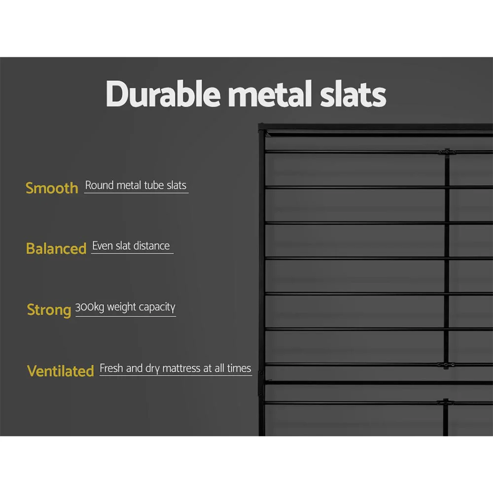 Artiss Leo King Single Metal Bed Frame, Black - Sturdy Steel, Powder-Coated, Storage Space, 150kg Capacity