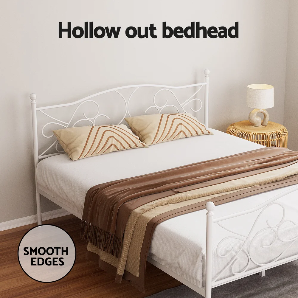 Artiss GROA Queen Size Bed Frame Metal Provincial Style, Powder-Coated Steel, Wooden Slats, Storage Space, White