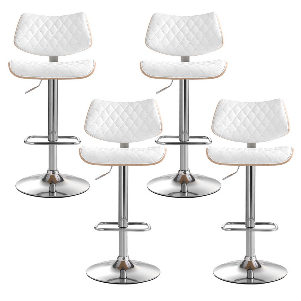Artiss Quilla 4x Bar Stools White PU Leather & Bentwood, Gas Lift Swivel Kitchen Dining Chairs 56.5-78.5cm