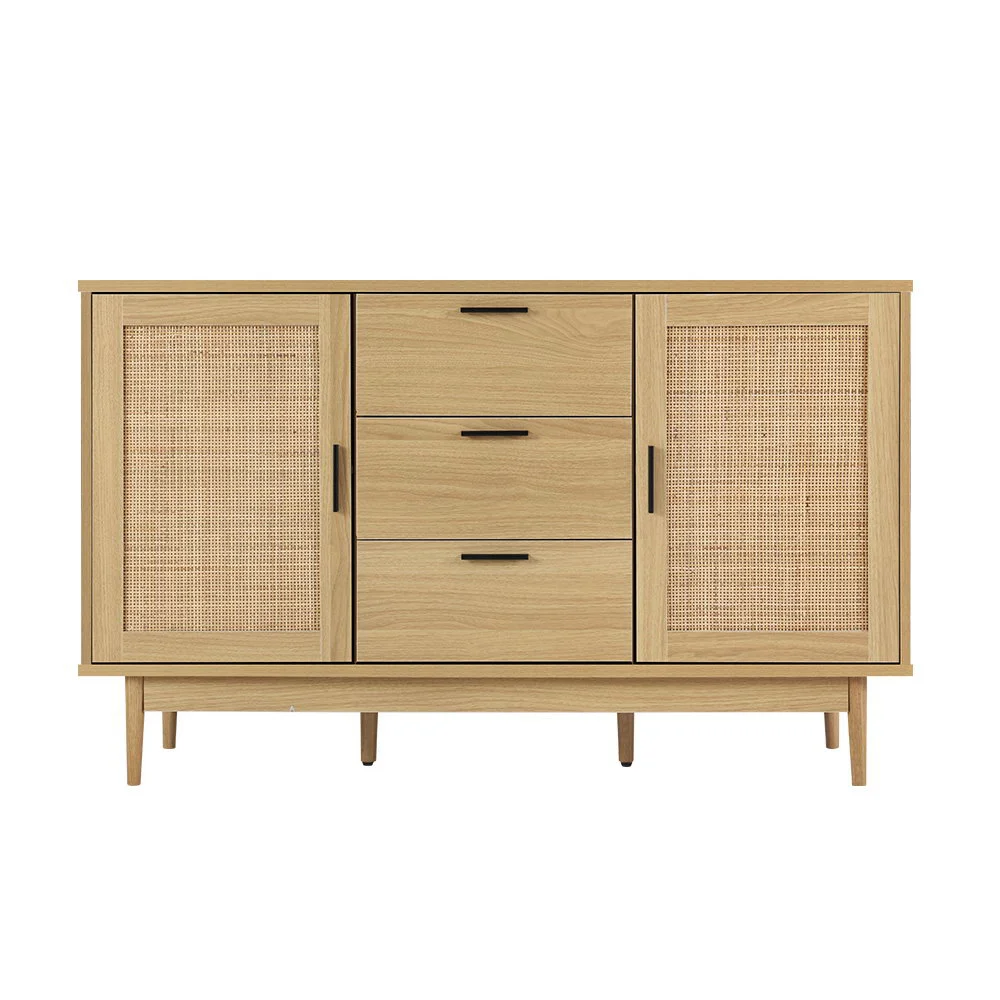 Transform your space with the Artiss Rattan Buffet Sideboard - BRIONY Oak, designed to bring a coastal bohemian vibe without breaking the bank. This stylish piece offers ample storage with three drawers and adjustable shelves, perfect for organizing your essentials. Crafted from durable materials with solid wood legs and extra support, it ensures lasting stability. Easy to assemble and maintain, this sideboard complements any décor and can be painted to match your style. Elevate your home with Artiss today!