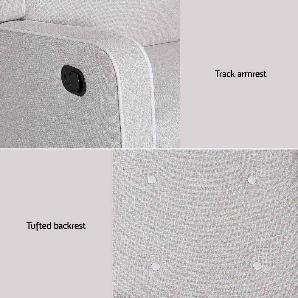 Artiss Recliner Armchair, Faux Linen Fabric, 64.5x72x99cm, Grey, Adjustable, High-Resilience Foam, Home Cinema Chair