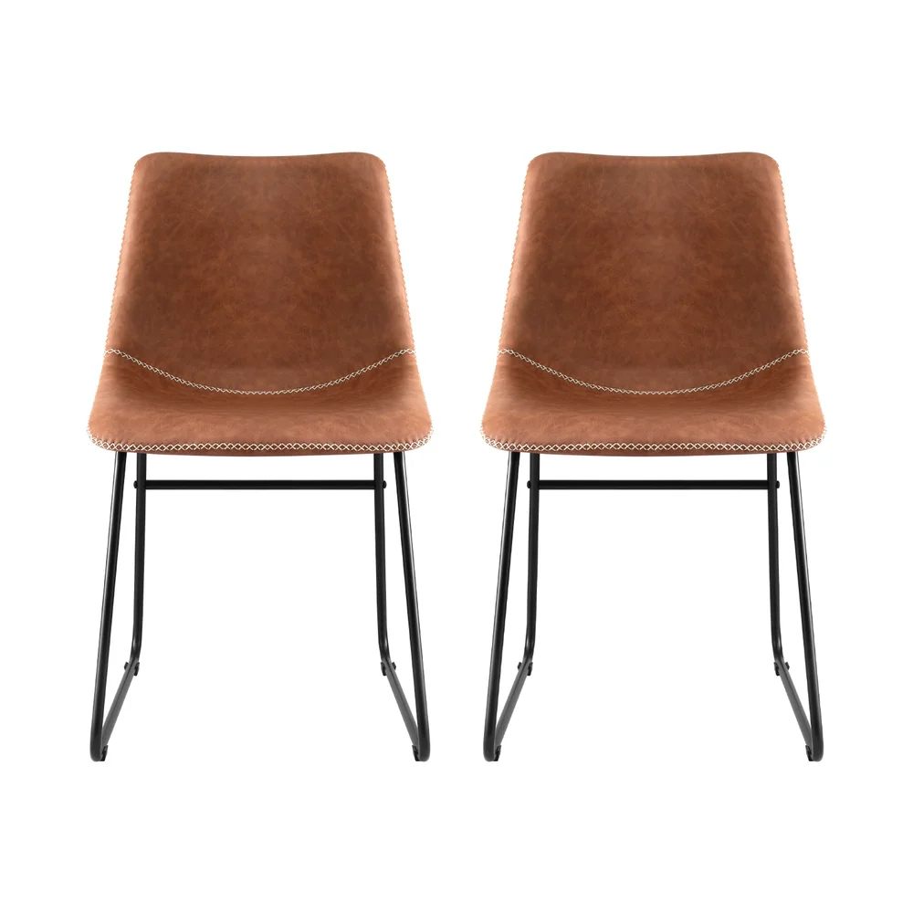Artiss 2x Retro Dining Chairs - Brown PU Leather, Ergonomic Design, Metal Sled Legs, 48x58x83cm, Mid-Century Accent