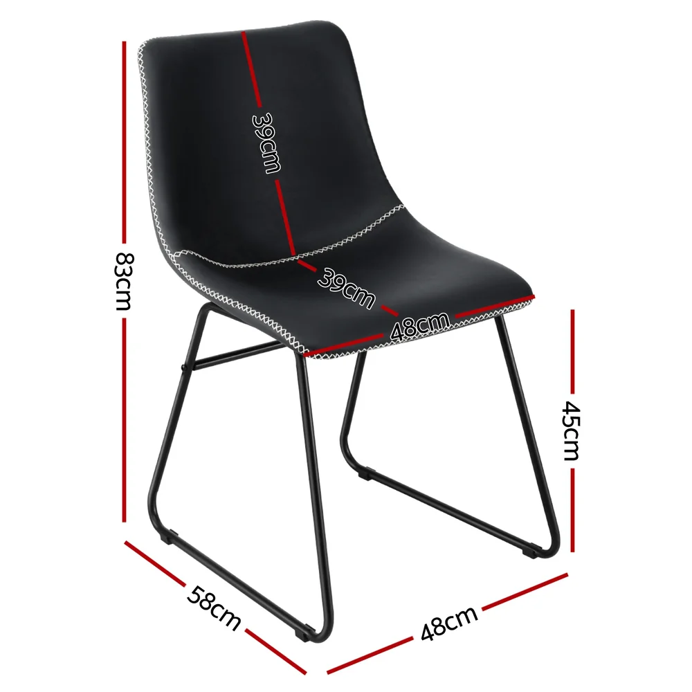 Artiss 2x Retro Dining Chairs - Black PU Leather, Ergonomic Design, Metal Legs, Compact 48x58x83cm, Easy Assembly