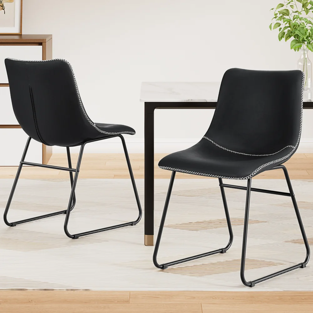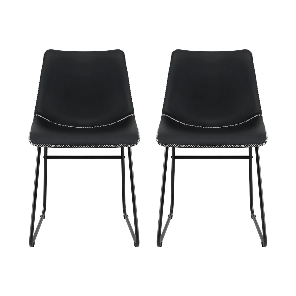 Elevate your home with the Artiss 2x Dining Chairs, a stunning fusion of mid-century allure and contemporary comfort. Crafted with premium PU leather featuring exquisite cross-stitch detailing, these chairs infuse vintage elegance into any space—be it your dining room, living room, or home office. The ergonomic curved backrest and plush padded seat ensure enduring comfort, while the sturdy metal sled legs provide stability and support up to 150kg. Compact and versatile, they're perfect for any room and easy to assemble in just 15 minutes. The easy-clean surface resists spills and scratches, making maintenance a breeze.