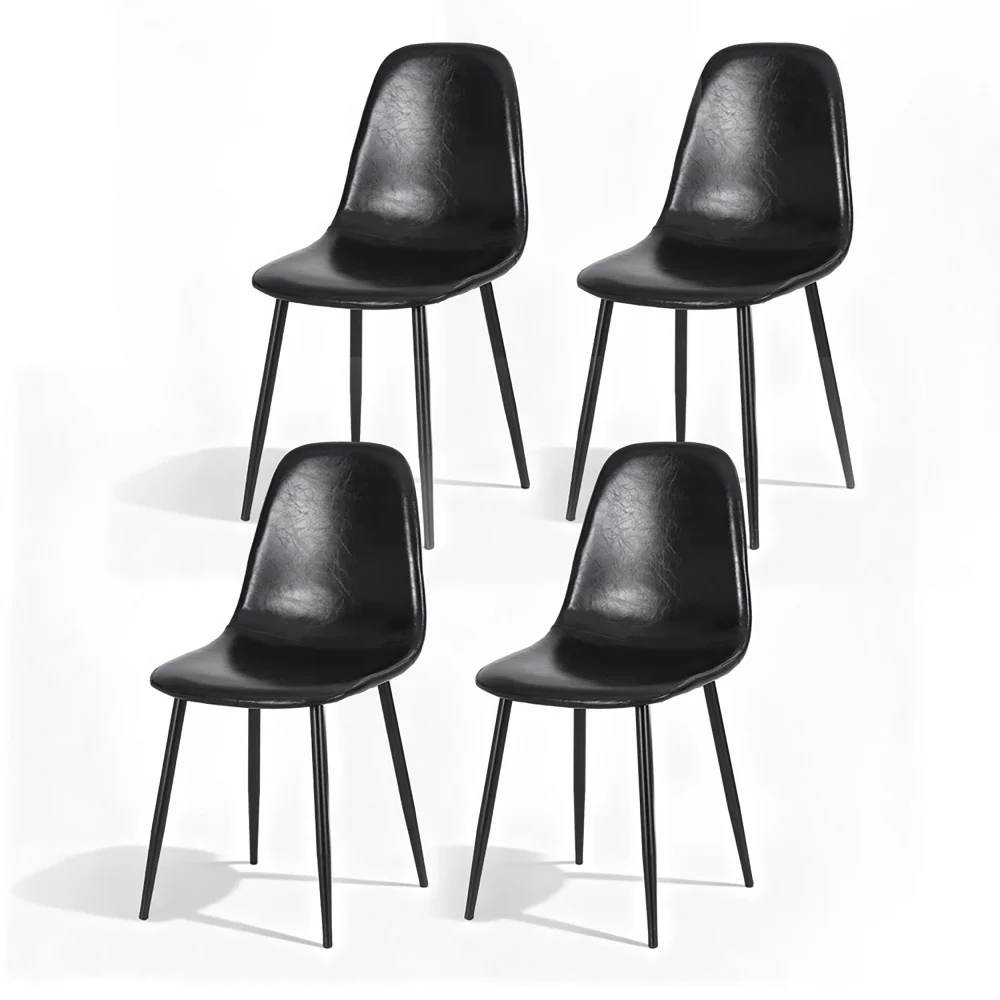 Artiss 4x Retro PU Leather Dining Chairs - Black, Ergonomic, Metal Legs, 40x45x86cm, Easy Assembly, Comfy Padding