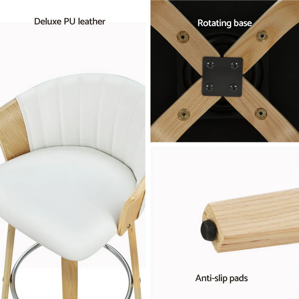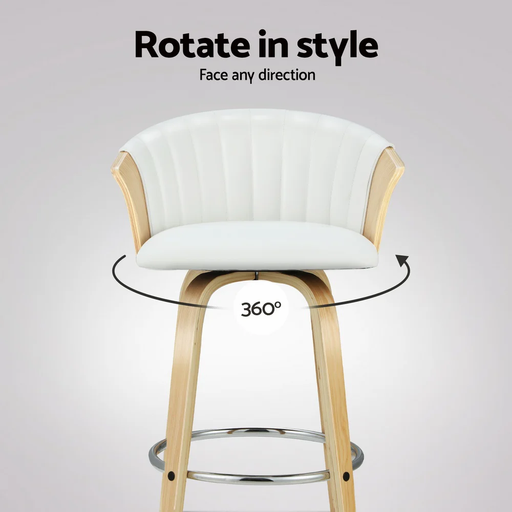 Artiss Ricardo Bar Stools, Bentwood & PU Leather, 66cm Seat Height, White, Set of 4 - Swivel & Contemporary Design