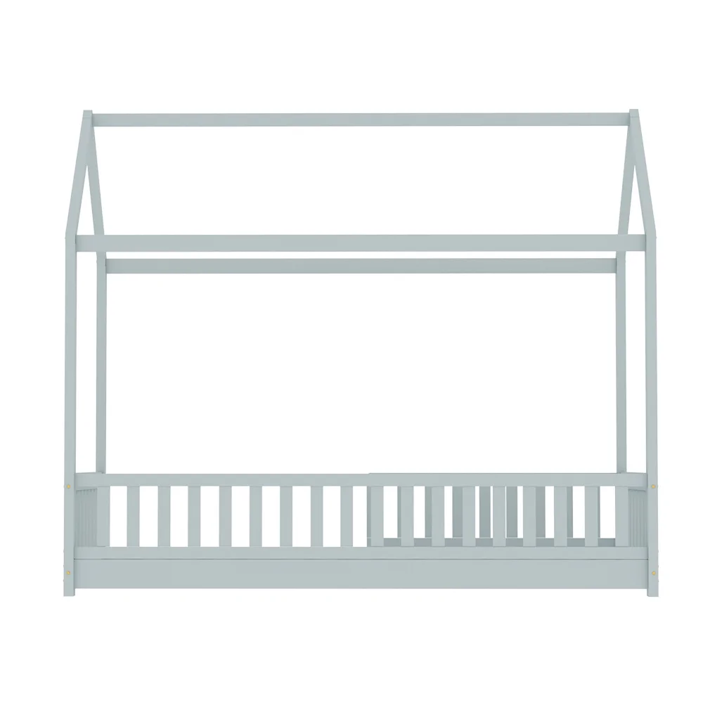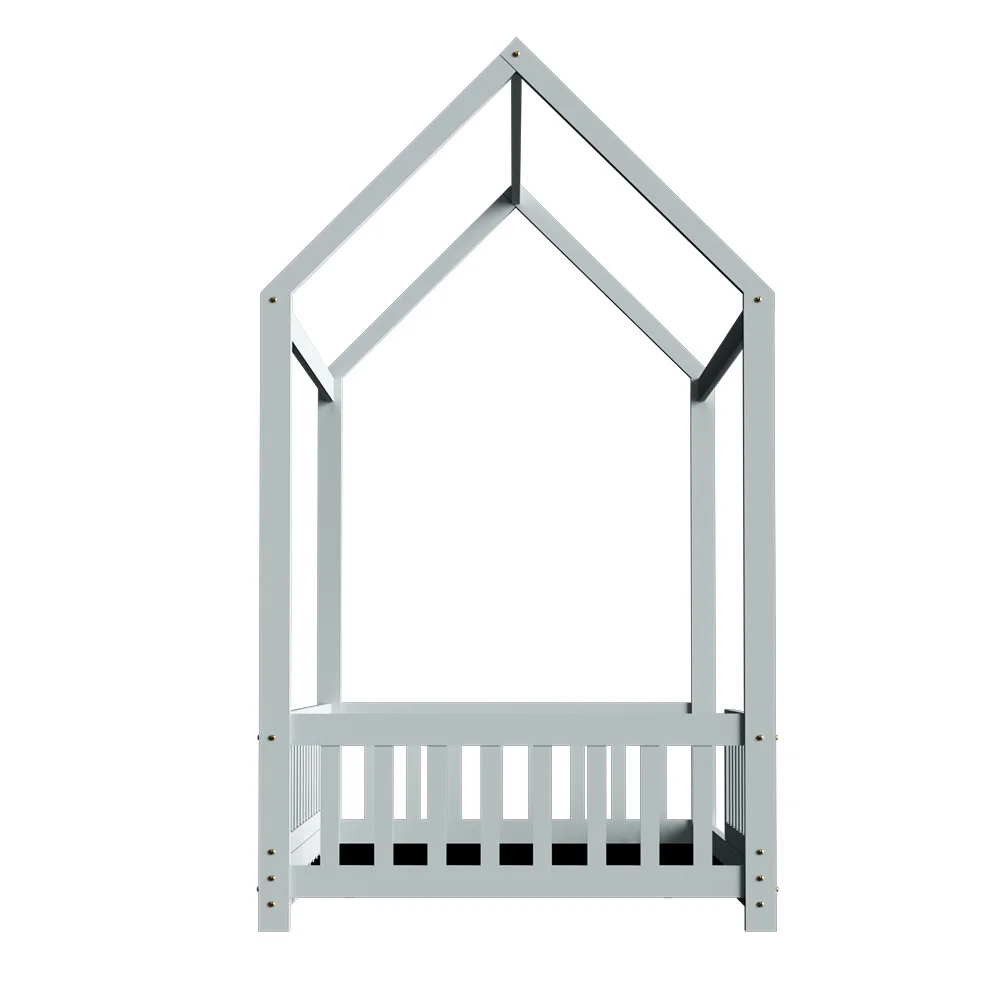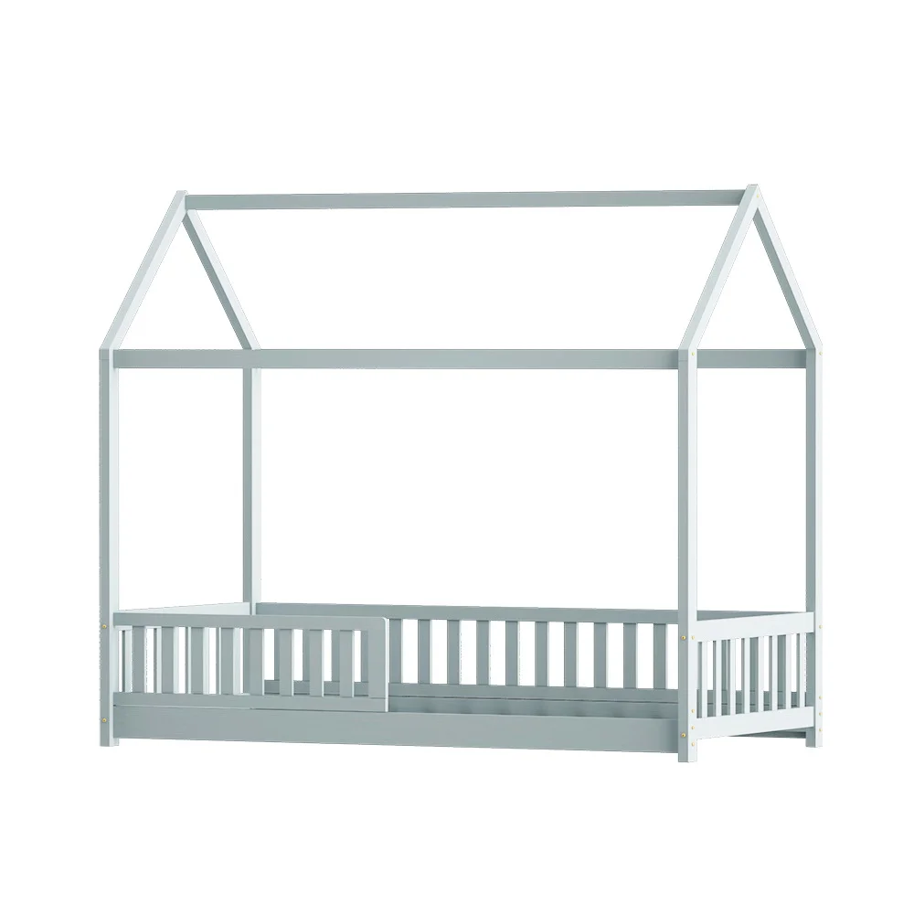 Artiss Wooden Kids Bed Frame, Pine Wood, Light Grey, 198x100x172cm, House Shape, Safe & Sturdy Design, Easy Clean