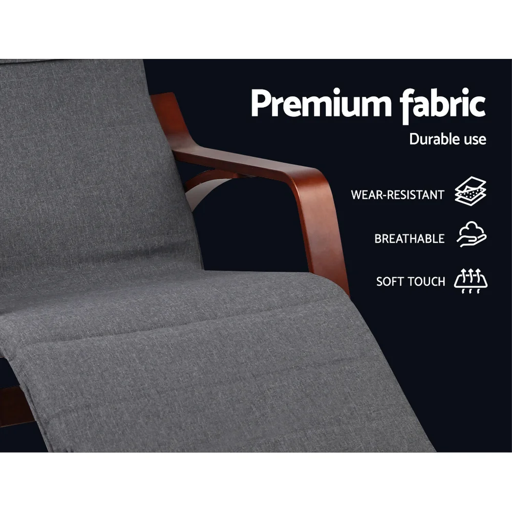 Artiss Bentwood Rocking Armchair with Adjustable Footrest, Charcoal Birch Plywood Frame, 122x59x100cm, 4cm Cushion