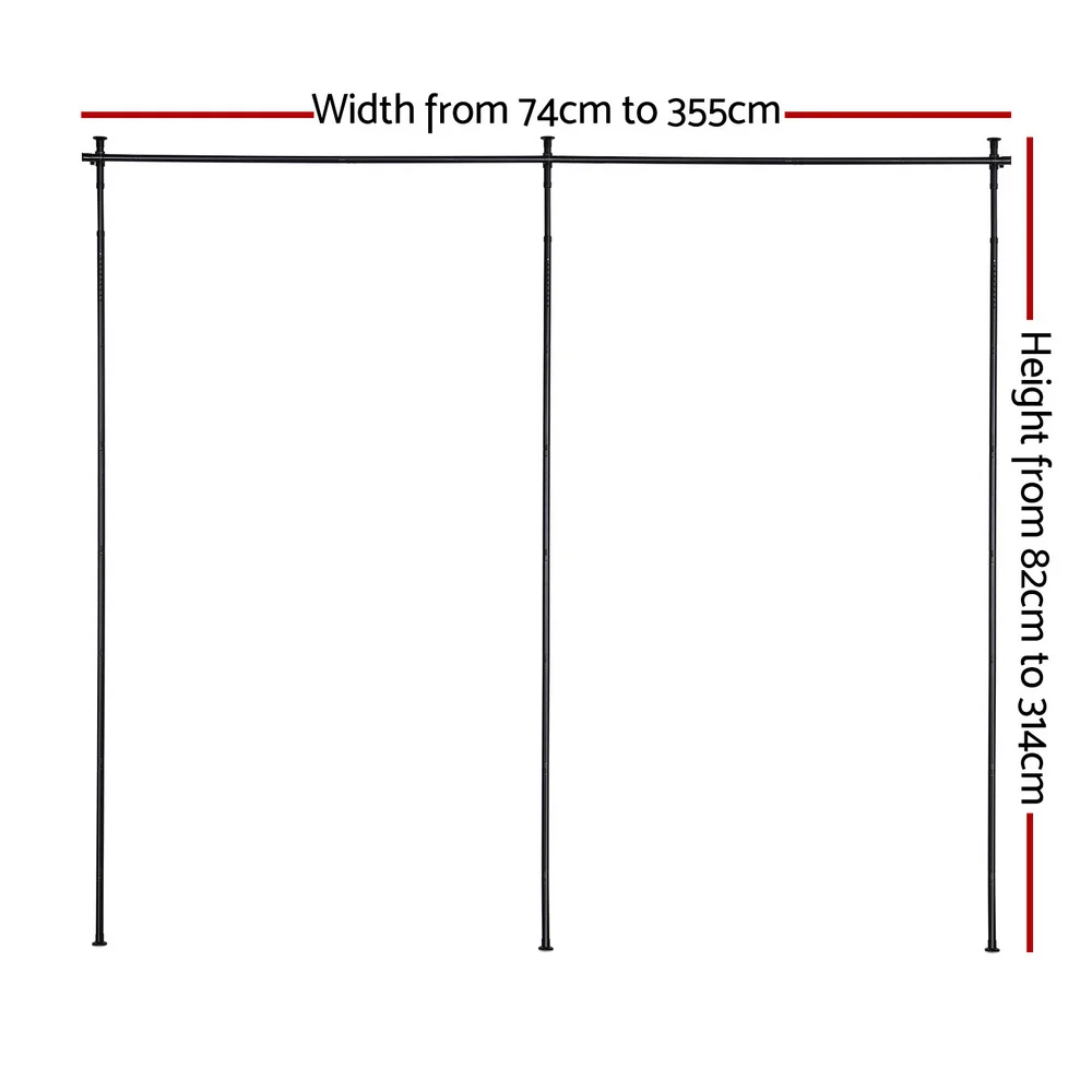 Artiss Adjustable Room Divider Curtain Rod - Extendable Black Metal, 82-314cm Height, 74-355cm Width, 15KG Capacity