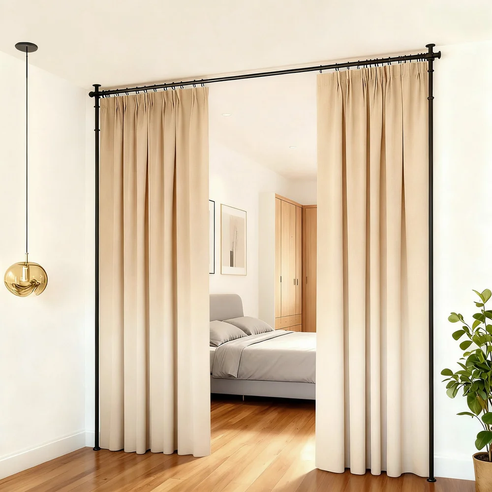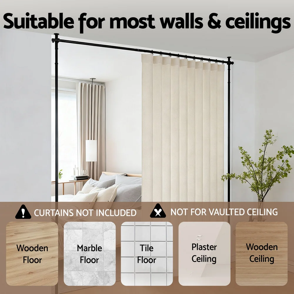 Artiss Adjustable Room Divider Curtain Rod Black – Extendable 82-314cm, Heavy-Duty Metal, Anti-Slip Base, Easy Install