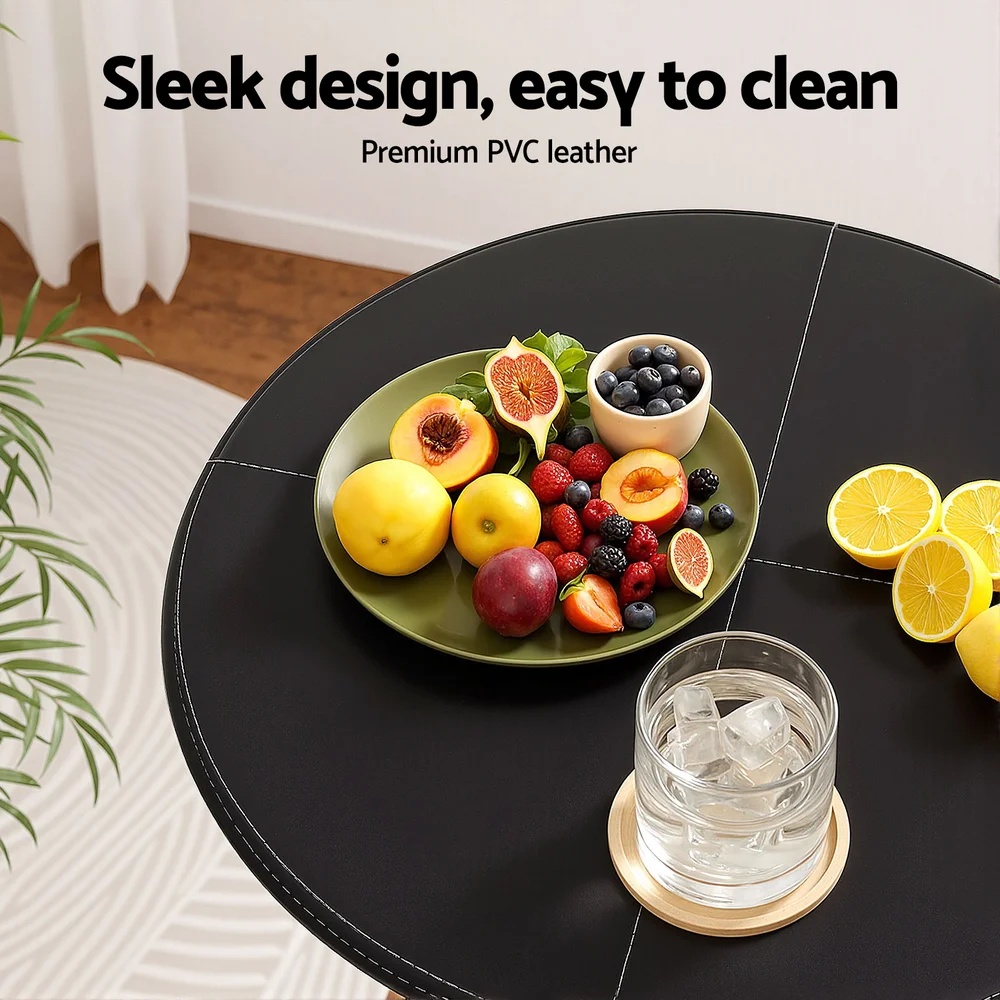 Artiss Modern 360° Swivel Bar Table – 62cm Round PVC Leather, Adjustable Height 71-91cm, Black, Durable & Stylish