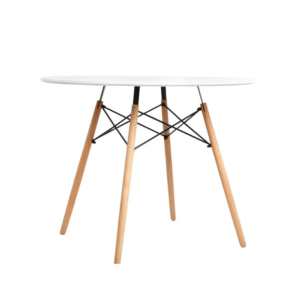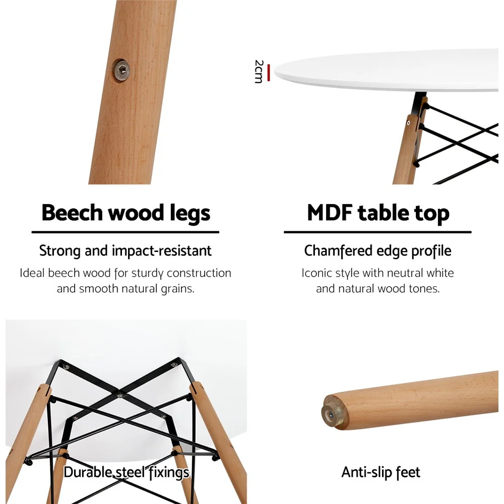 Artiss Round White Dining Table - 4 Seater, 90CM Replica, 20mm MDF Top, Beech Wood Legs, Matte Finish, Anti-Slip Design