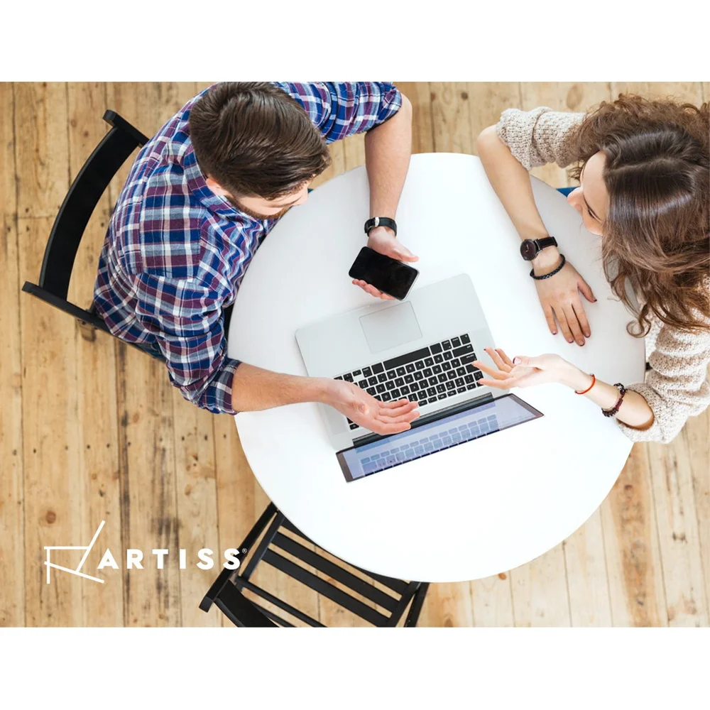 Artiss Bar Table, MDF & Steel, 60cm Round, White, Adjustable Height, 360° Swivel, Indoor/Outdoor Use