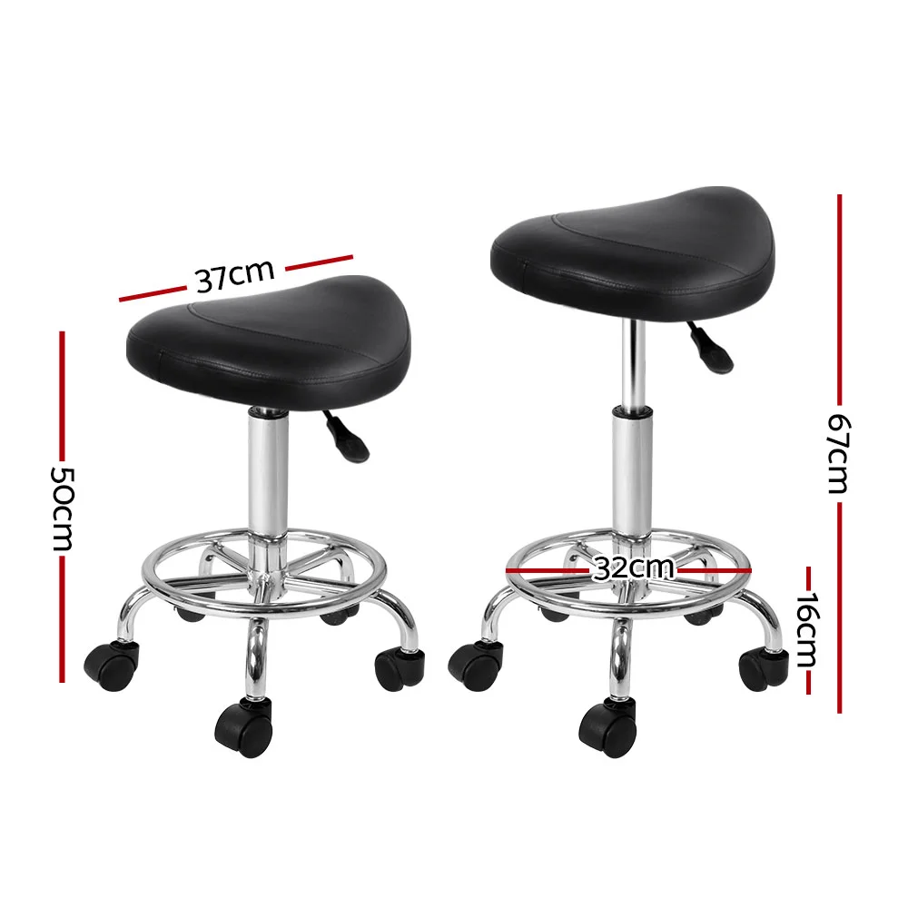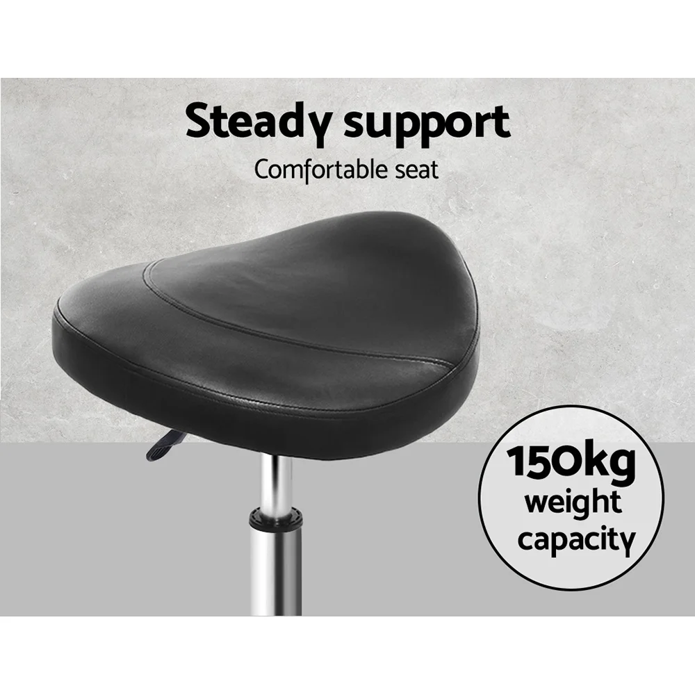 Artiss Salon Stool Saddle Swivel Chair, PU Leather, Black, Adjustable Height 50-67cm, Comfort & Style for Any Space