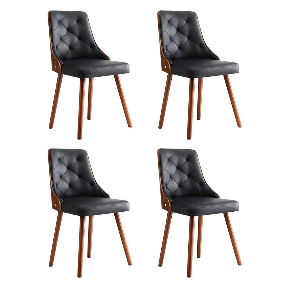 Artiss Set of 4 Black Dining Chairs PU Leather, Diamond Tufted, Foam Padded, Wooden Legs, 150kg Capacity
