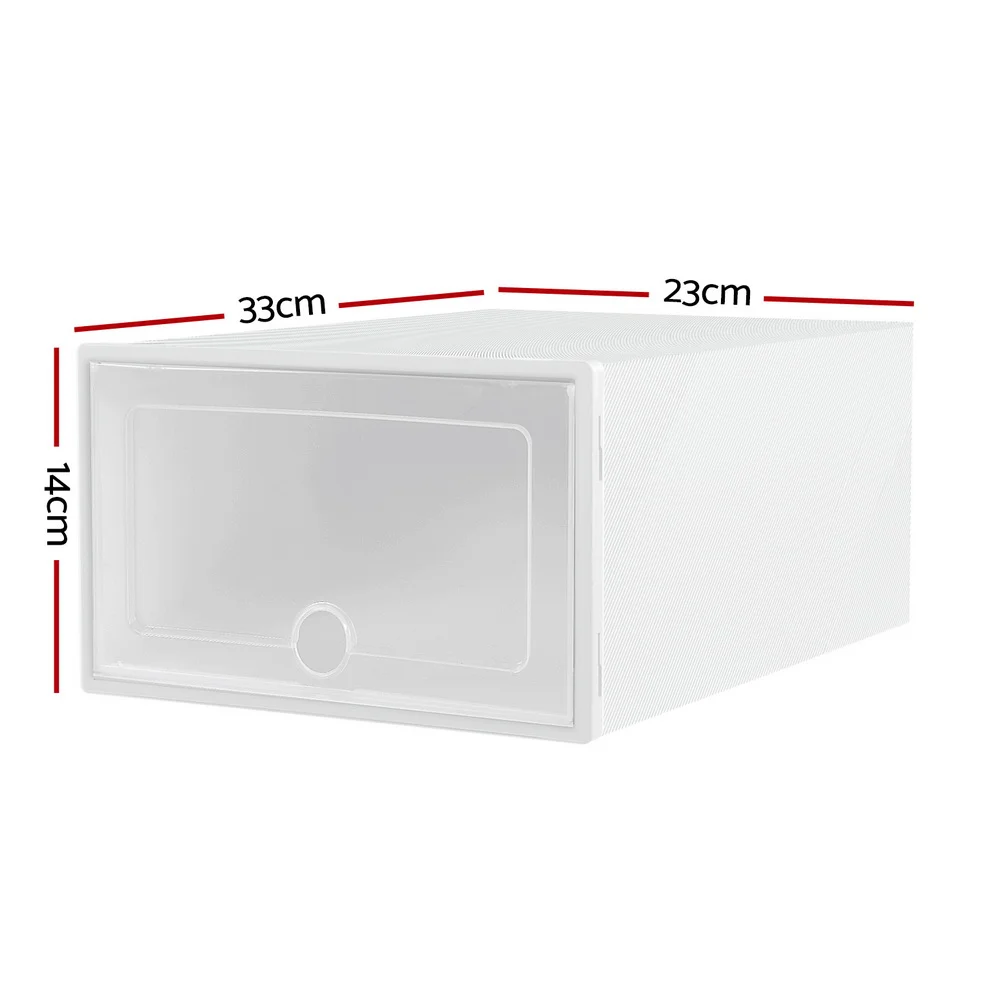 Artiss Abel Shoe Box Rack Set of 12 Stackable Shoe Storage Boxes, White, PP Plastic, Foldable, 33x23x14cm, Ventilated