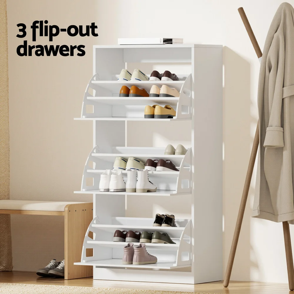 Artiss White Shoe Cabinet Storage Drawer - Holds 45 Pairs, 3 Flip-Up Drawers, Adjustable Shelves, 121cm Height