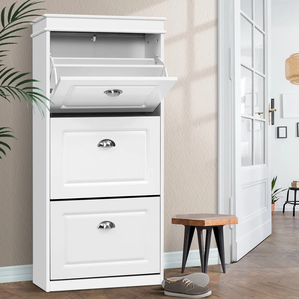 Artiss 3-Tier Shoe Rack Cabinet, White, 45 Pairs, 6 Flip-Out Drawers, Stylish Storage, Easy Assembly, 1-Year Warranty