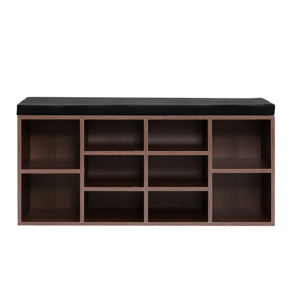 Artiss Shoe Rack Cabinet Bench - 10 Cube Walnut Storage with PU Leather Seat, Eco-Friendly, Easy Assembly
