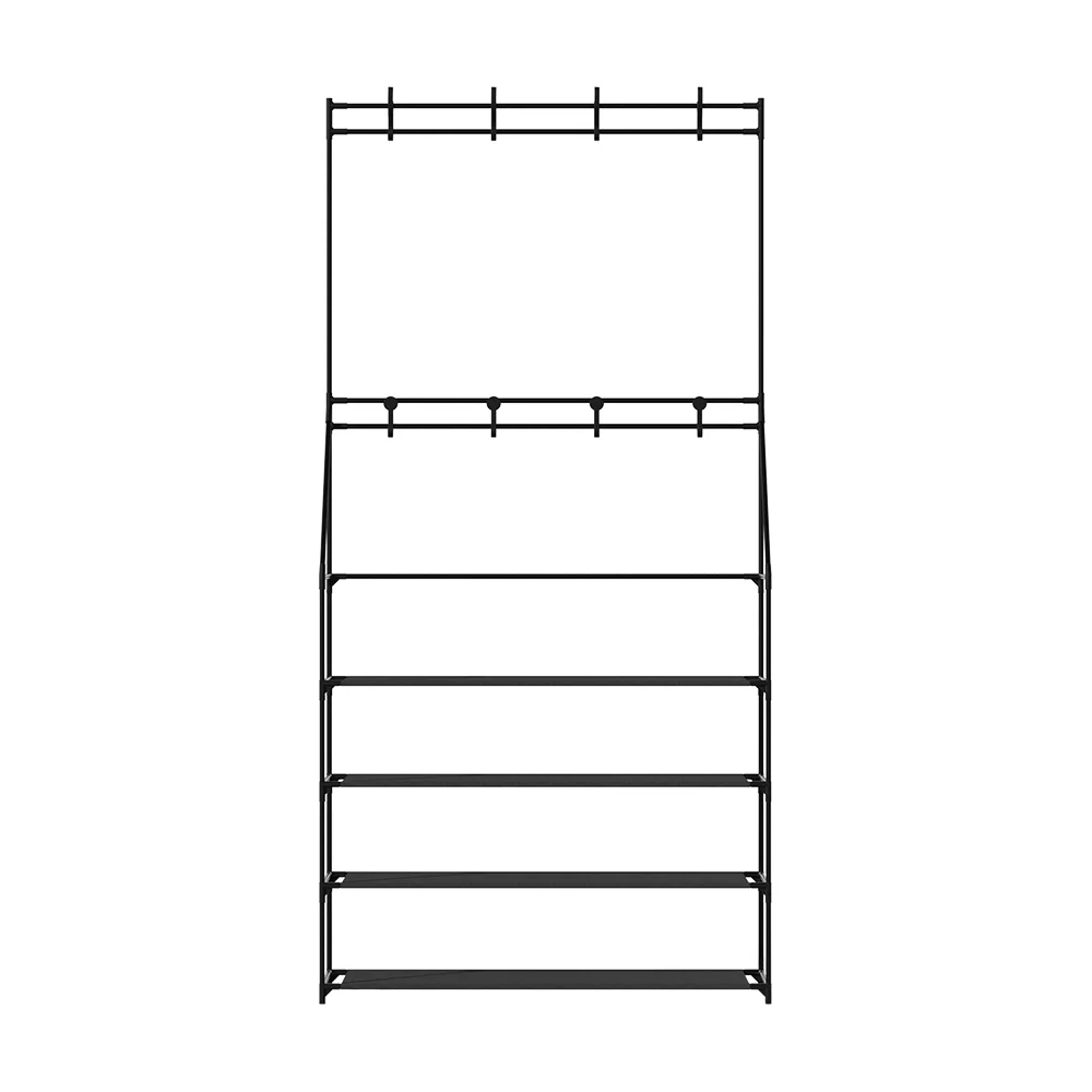 Artiss Shoe Rack Hall Tree, Metal, 176x29x80cm, Black - 3-in-1 Organiser for 16 Pairs, Coats & Accessories