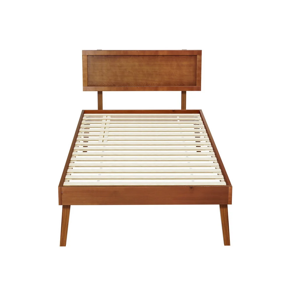 Artiss Splay Single Bed Frame, Pinewood, Walnut Finish, Sturdy Slats, Easy Assembly, Fits Standard Australian Mattress