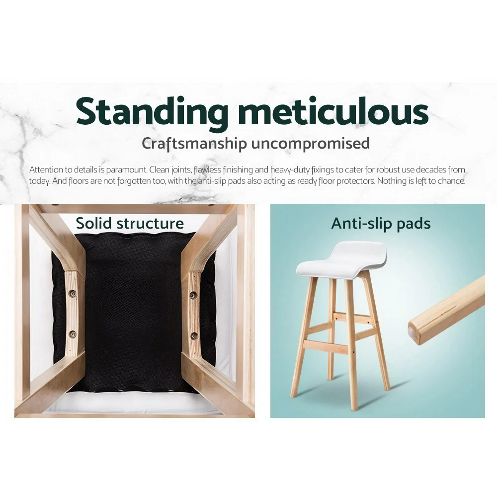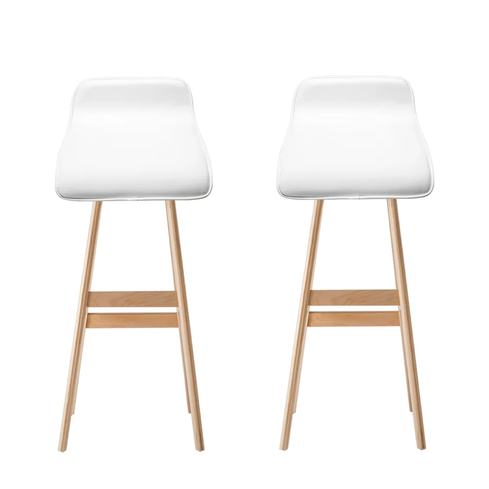 Artiss 2x Sliva Bar Stools Wooden Plywood Frame White PU Leather Upholstery 74cm Seat Foam Padded Set of 2