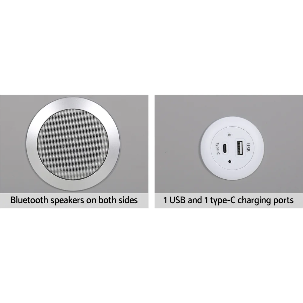 Upgrade your bedside experience with the Artiss Aida Smart Bedside Table. Featuring wireless charging, USB and Type-C ports, and built-in Bluetooth speakers, this table blends style and technology. The premium PU leather finish, tempered glass top, and sleek metal handles create a modern look, while two spacious drawers keep essentials organised. Adjustable LED lighting allows you to set the perfect mood, and sturdy metal legs with anti-slip pads ensure stability. Easy to clean and assemble, the Aida table brings smart convenience to your living space.