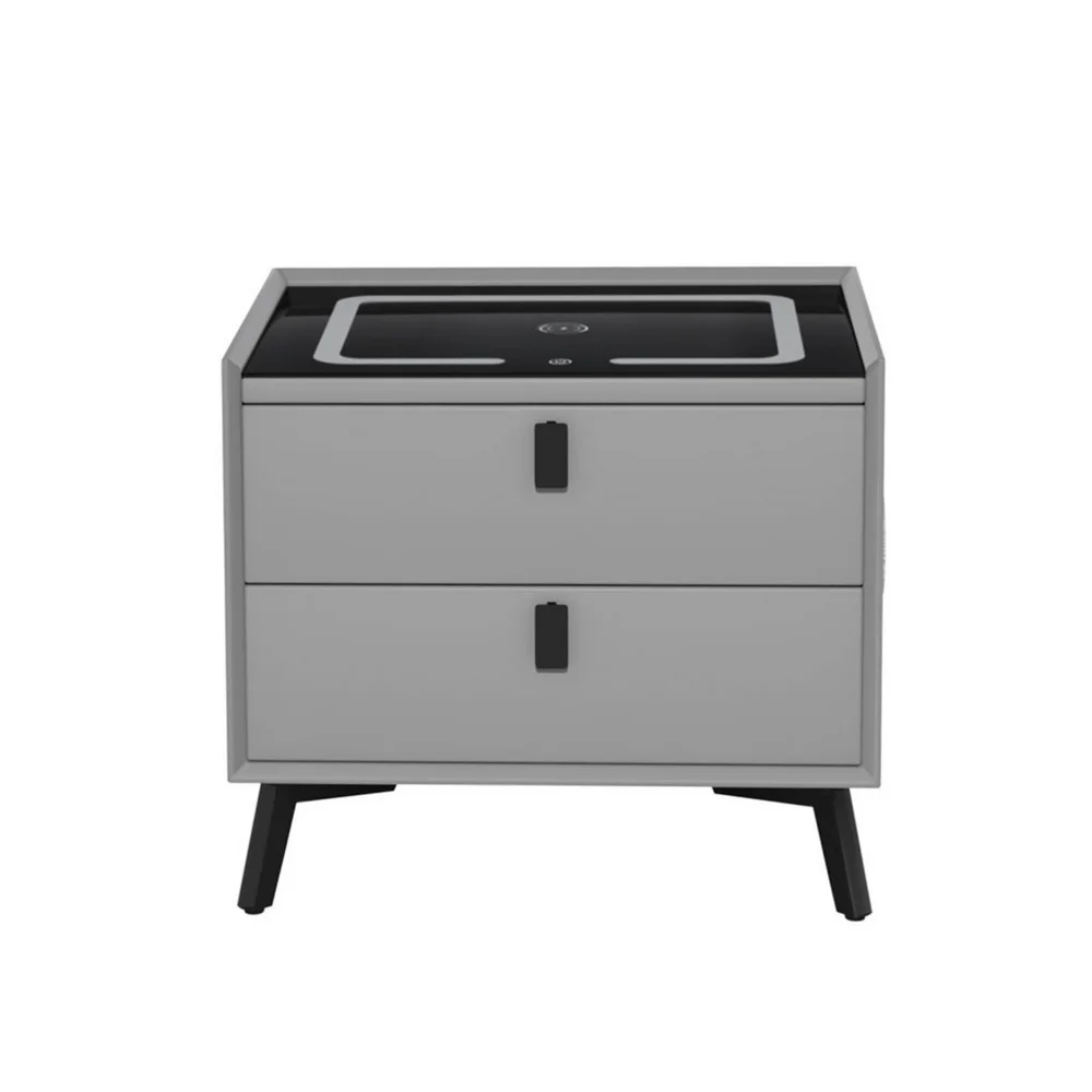 Artiss Smart Bedside Table, PU Leather, 50x40x44cm, Grey, Wireless Charging, Bluetooth Speaker, LED Lights, Storage