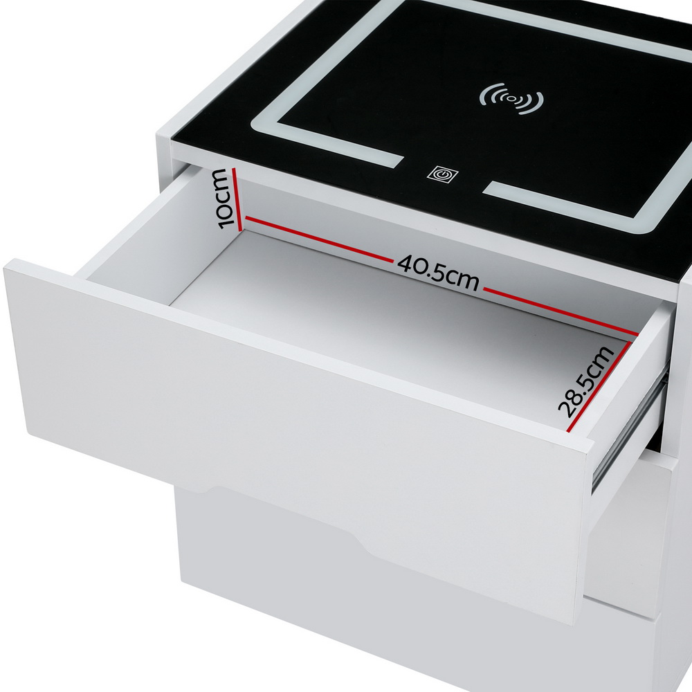 Artiss Smart Bedside Table with 3 Drawers, Wireless Charging, LED, Tempered Glass, 48.5x40x55cm, White
