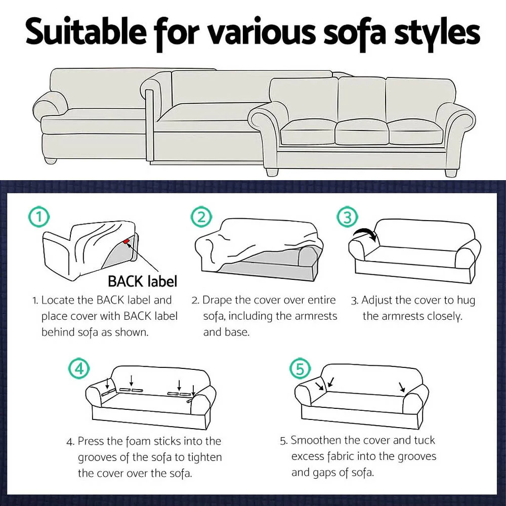 Artiss 4 Seater Sofa Cover Grey, Stretch Knitted Fabric, Machine Washable, Anti-Slip, Fits Most Couch Styles