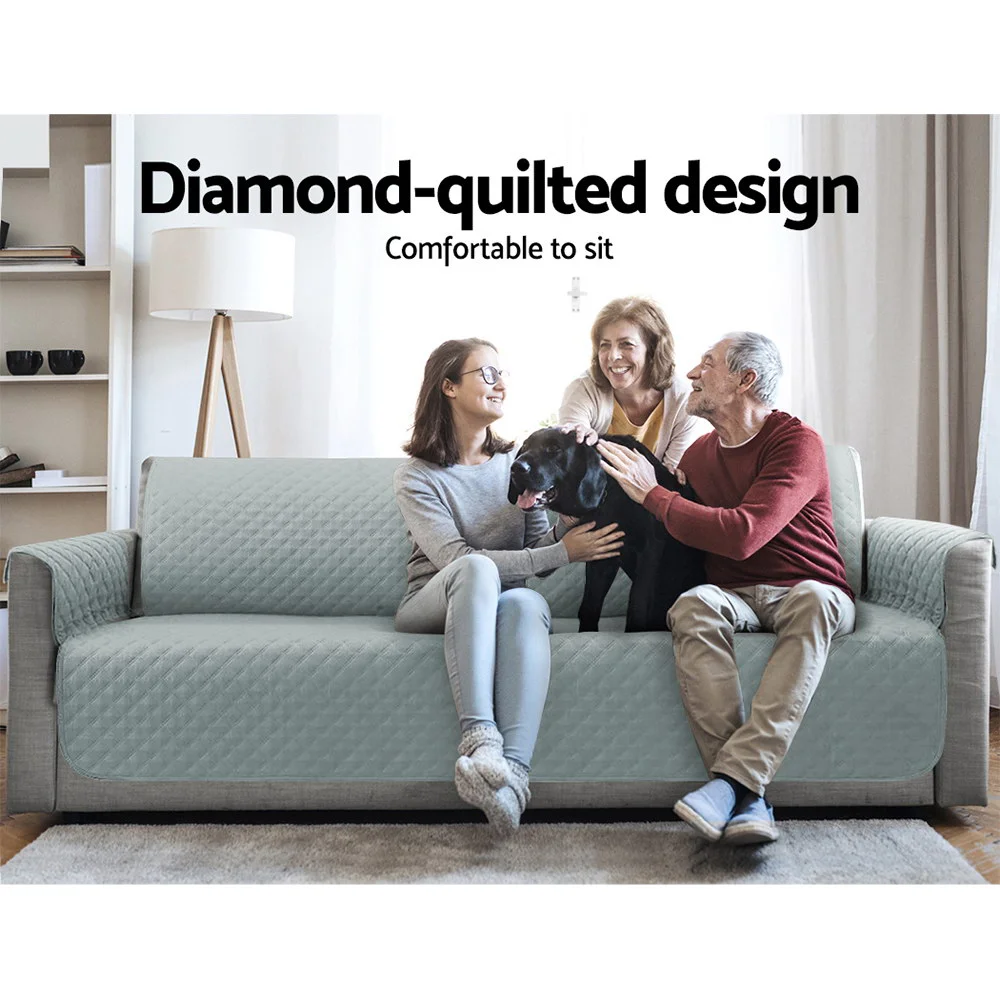 Artiss 3 Seater Sofa Cover, Grey - 100% Water Resistant, Diamond-Quilted, Microfibre, Anti-Slip, Machine Washable