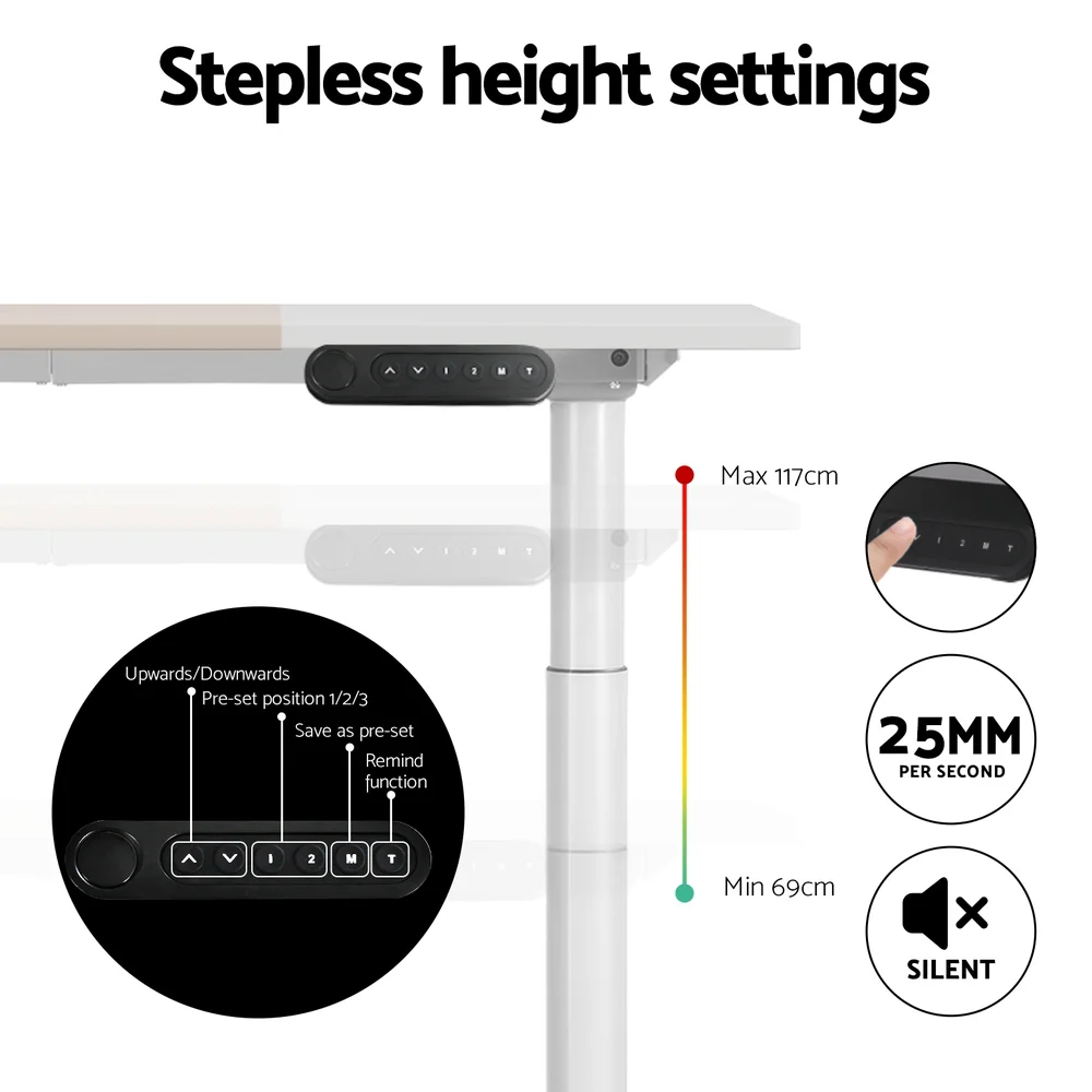 Artiss Standing Desk Motorised Electric Dual Motor 120cm White Oak, Height Adjustable, Digital Control, Eco-Friendly