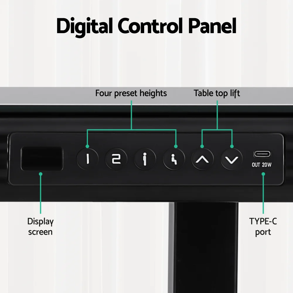 Artiss 120CM Motorised Standing Desk - Tempered Glass Top, Electric Height Adjustable, Black Frame, USB Charging
