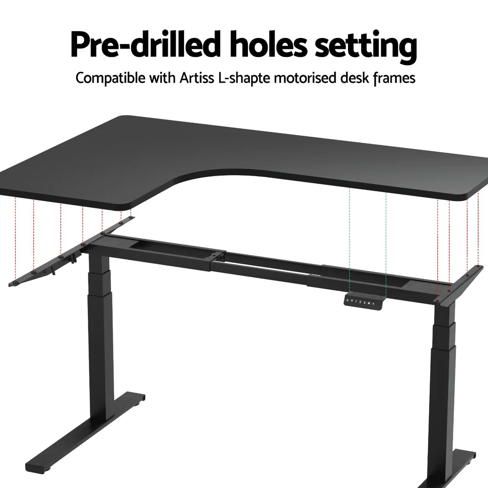 Transform your workspace with the Artiss Standing Desk Top L-shape in Black. At 160cm, this motorised desktop boasts a sleek, glossy finish with pre-drilled holes and smooth edges for easy assembly. Perfectly designed to complement Artiss L-shape motorised frames (sold separately), it offers a blend of style and functionality. Elevate your office experience with ease and sophistication. Includes a 1-year warranty.