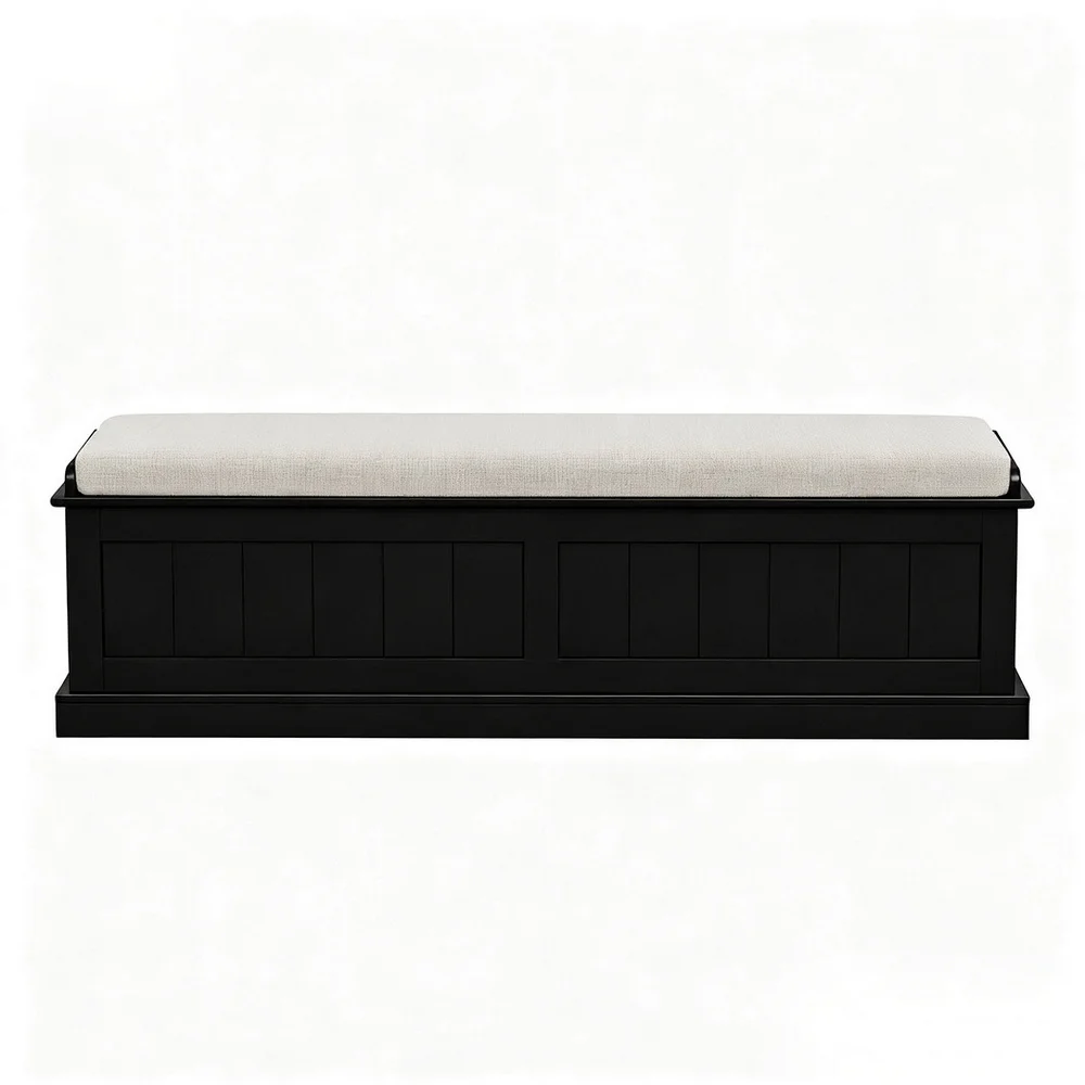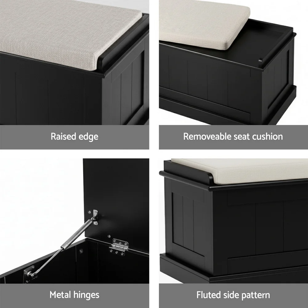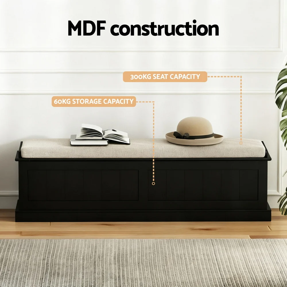 Artiss 140cm Fluted Black Storage Ottoman Blanket Box - Faux Linen Upholstery, Hinged Lid, Multi-functional Seating
