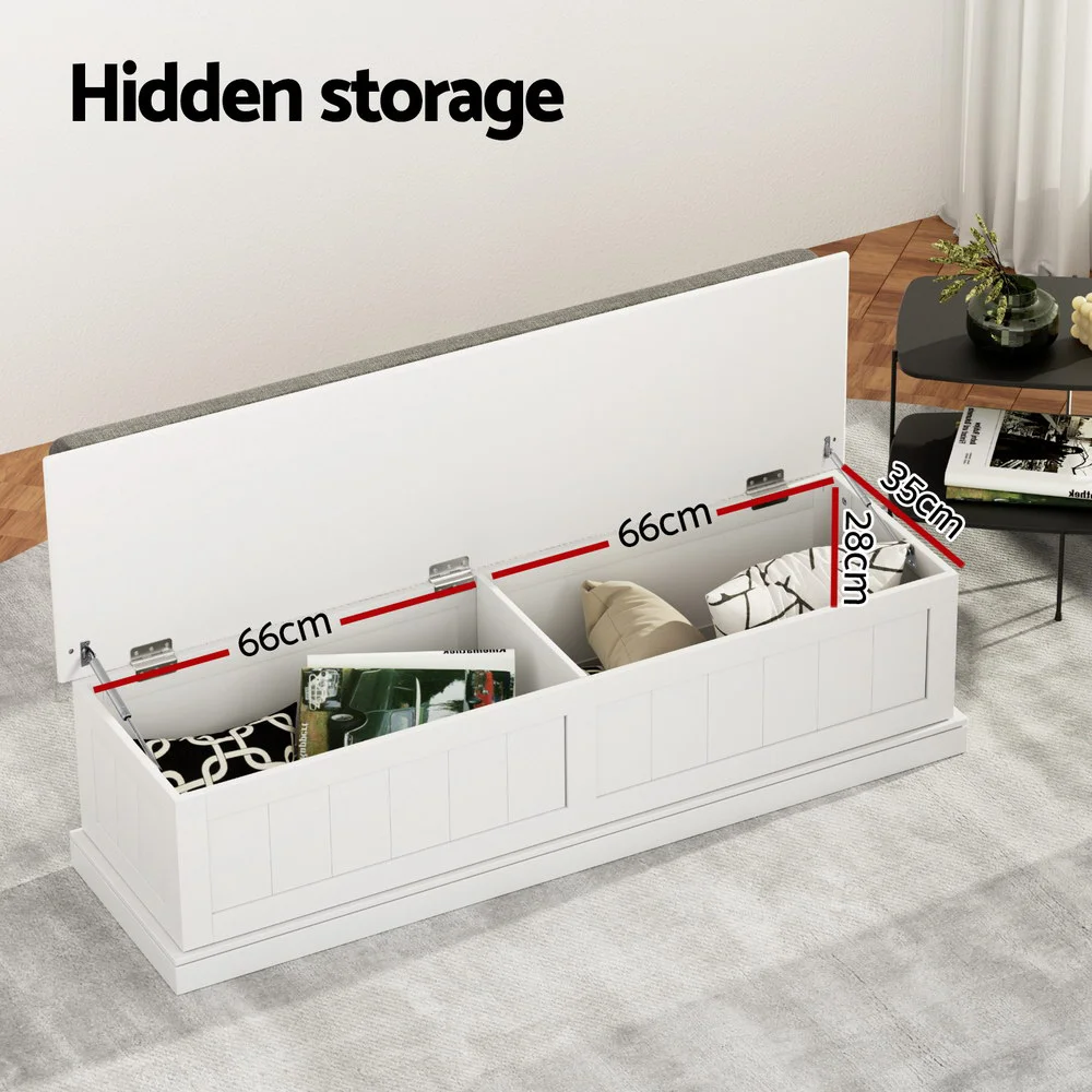 Artiss 140cm Fluted Grey Storage Ottoman Blanket Box - Faux Linen Upholstery, Hinged Lid, MDF Frame, 300kg Capacity