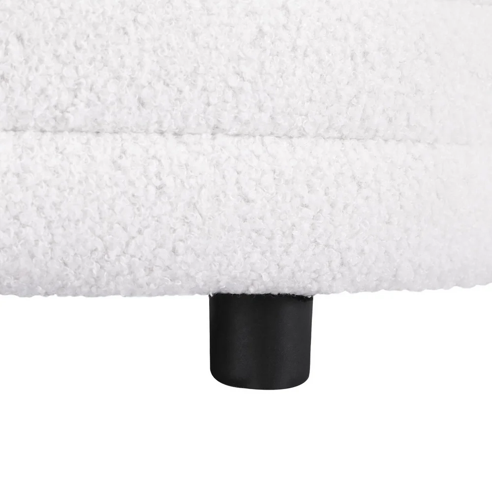 - Bouclé fabric upholstery with dense foam padding for comfortable seating