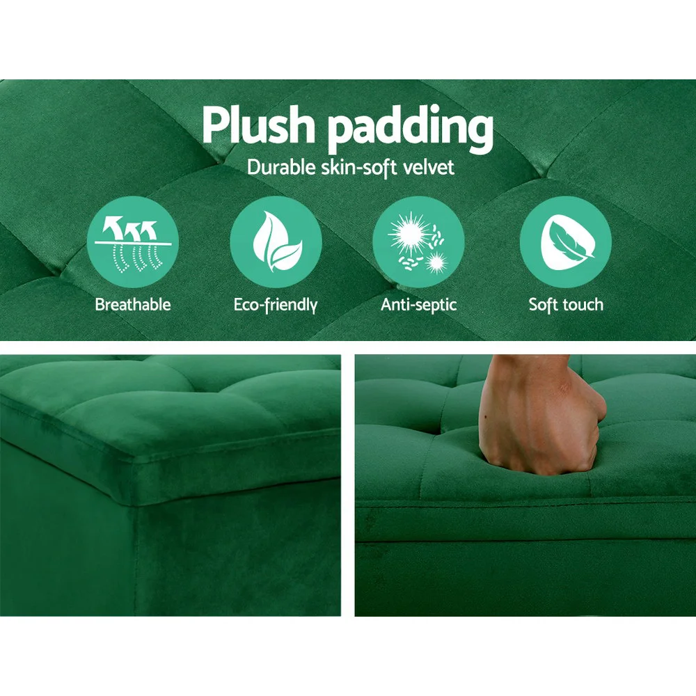 Artiss Storage Ottoman, Velvet, 98cm, Green, Elegant Tufted Design, Spacious Blanket Box, Versatile Home Décor