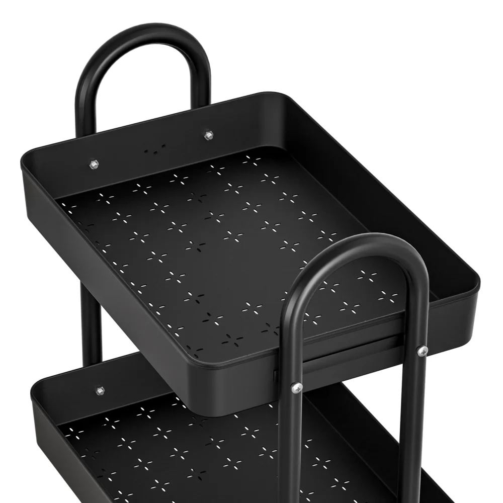 Artiss 3-Tier Kitchen Storage Trolley Cart with Wheels, Steel Frame, 45kg Capacity, 46x35.5x80cm, Black