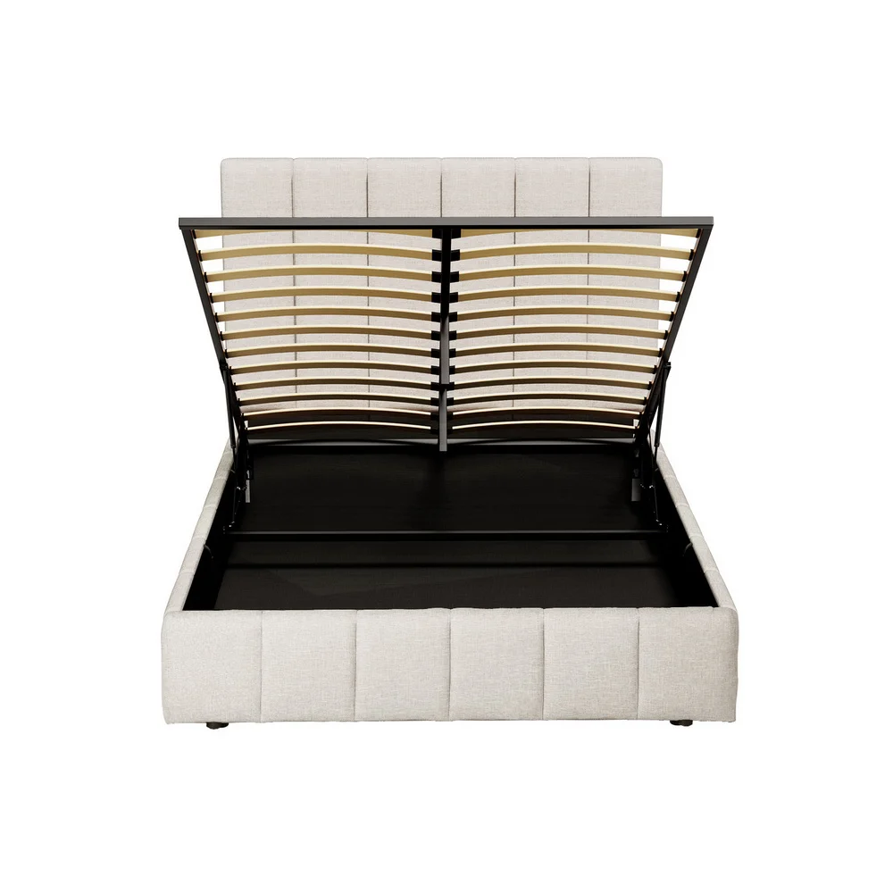 Artiss TETTE Double Bed Frame Beige Upholstered Linen, Solid Pine Wood, Gas Lift Storage, Sturdy Slats, 300KG Capacity
