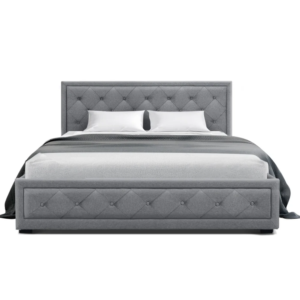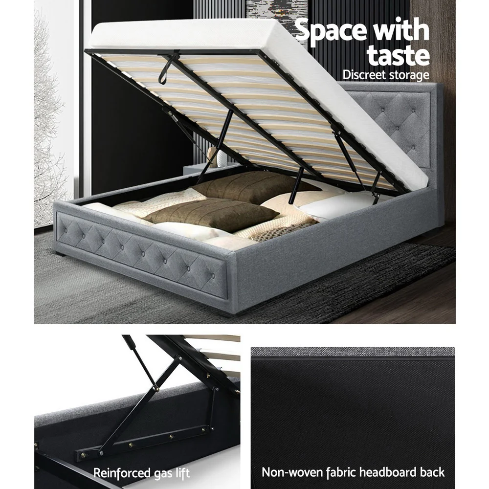 Artiss Double Size Gas Lift Bed Frame in Charcoal - Faux Linen, Storage, Scandinavian Design, Easy Assembly