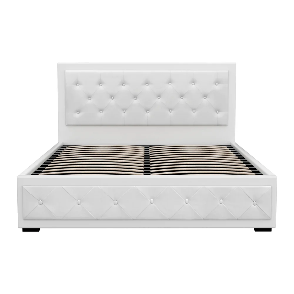 Artiss Tiyo Queen Size Gas Lift Bed Frame - White PVC Leather, Tufted Headboard, Storage, Heavy-Duty, Easy Assembly
