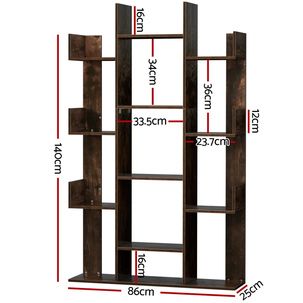 Artiss Tree-Shaped Bookshelf, 12mm Particle Board, Walnut, 86x25x140cm, Industrial Style, Easy Assembly, 1-Year Warranty