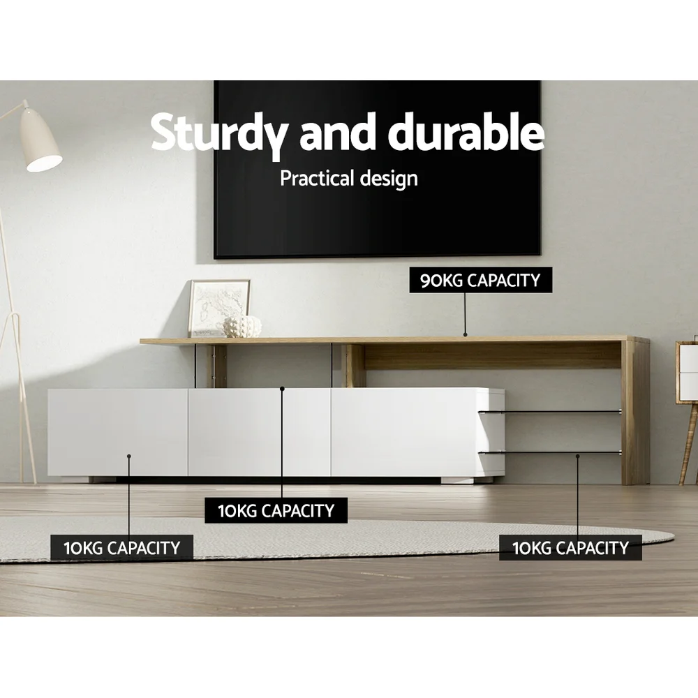 Artiss 180cm TV Cabinet Entertainment Unit - Modern Dual-Tone Wood White, 3 Drawers, Tempered Glass Shelves, High Gloss