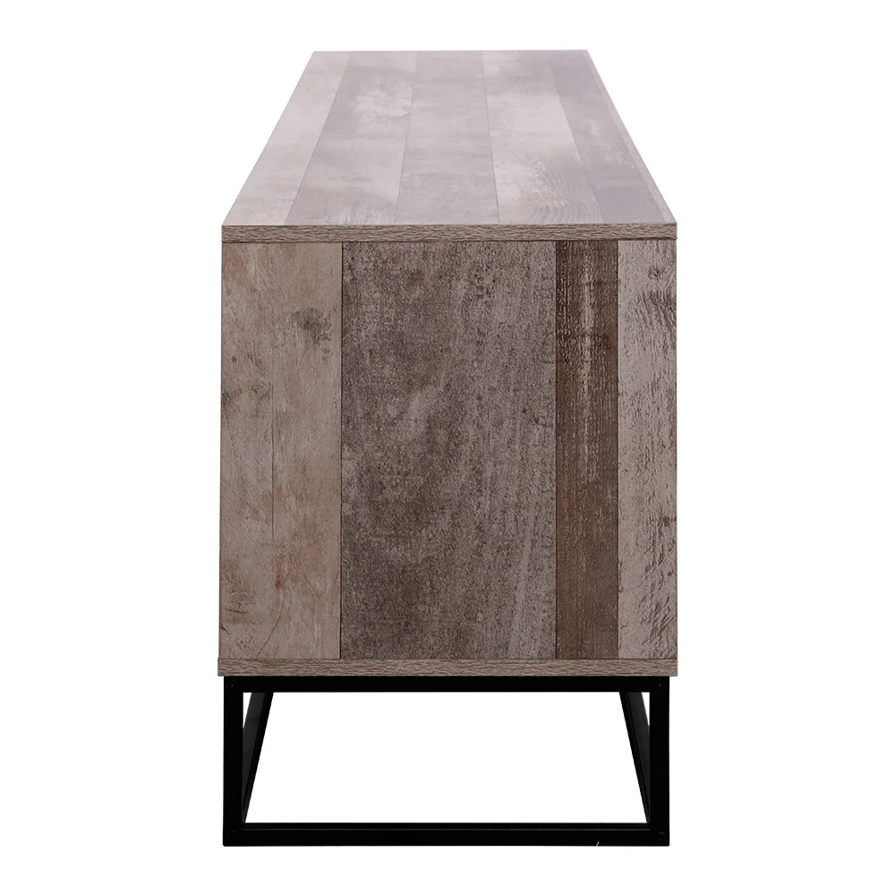 Elevate your home entertainment with the Artiss Marca TV Cabinet. This 180cm unit boasts an industrial design with a natural timber veneer and eco-friendly materials. Crafted from 15mm E1 particle board and a powder-coated steel frame, it offers ample storage with two cabinets, a drawer, and an open shelf. The vintage handles and anti-rust metal base ensure durability, while extra supporting legs provide stability. Perfect for a timeless and stylish addition to any living space.
