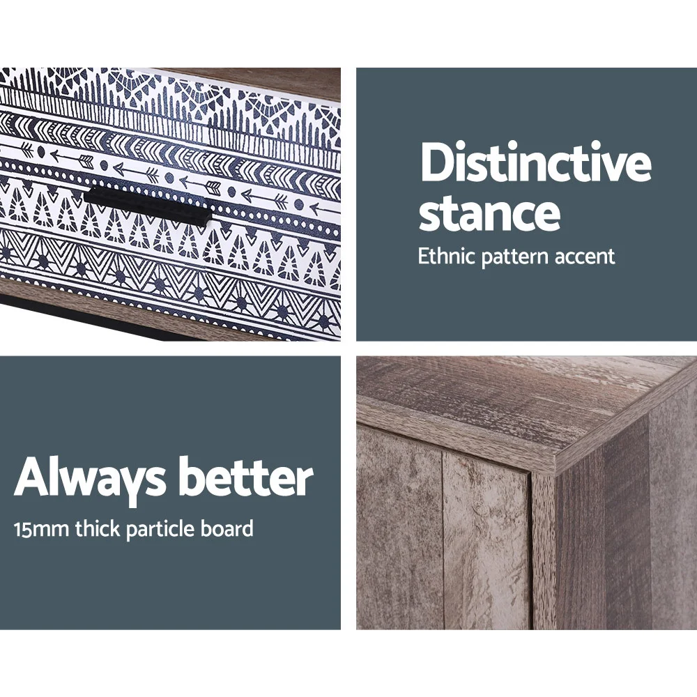 Artiss 150cm TV Unit, Walnut White, E1 MDF, 2 Cabinets, 2 Shelves, Carved Pattern, Soft-Close, Anti-Tip,