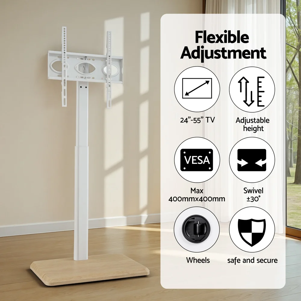Enhance your entertainment setup with the Artiss Table Top TV Stand, designed to accommodate 24"-55" screens with ease. Boasting a robust tempered glass base and a solid metal frame, this stand supports various VESA measurements and swivels 30 degrees for optimal viewing. Its sleek black finish complements any decor, while smooth-rolling wheels ensure effortless mobility. A reinforced steel structure and safety lock provide stability, allowing you to securely place a sound bar or mini component system. Effortlessly conceal cables for a tidy look and elevate your media experience with this versatile TV stand.