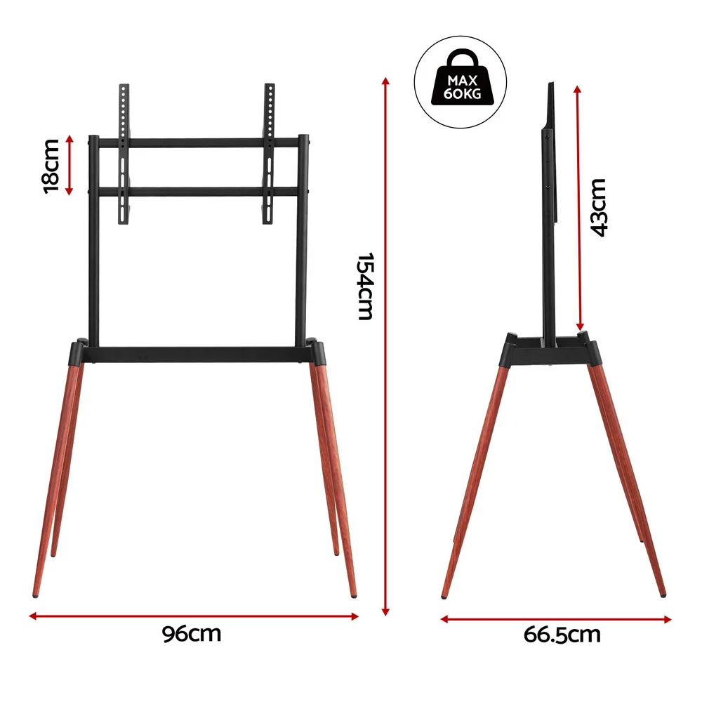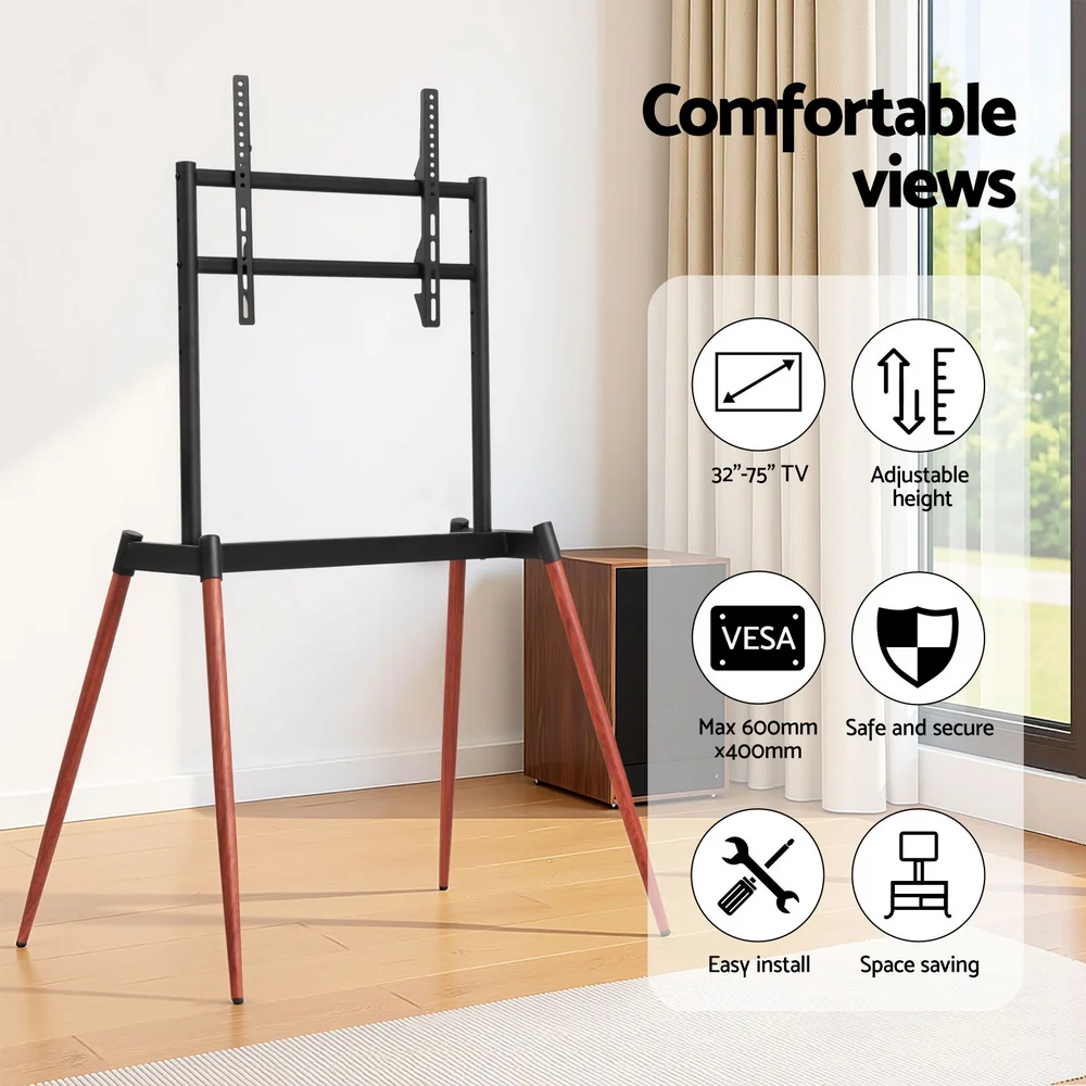 Artiss Wooden Floor Easel TV Stand, 32-75 Inch, Adjustable Height, Metal Frame with Wood Look Legs, Cable Management