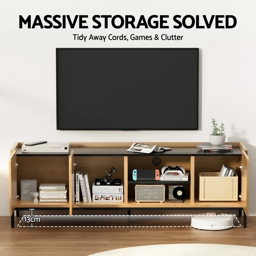 Artiss TV Entertainment Unit 160cm Pine & Black, Storage Cabinet Shelf, Metal Feet, Soft Close, Cable Management